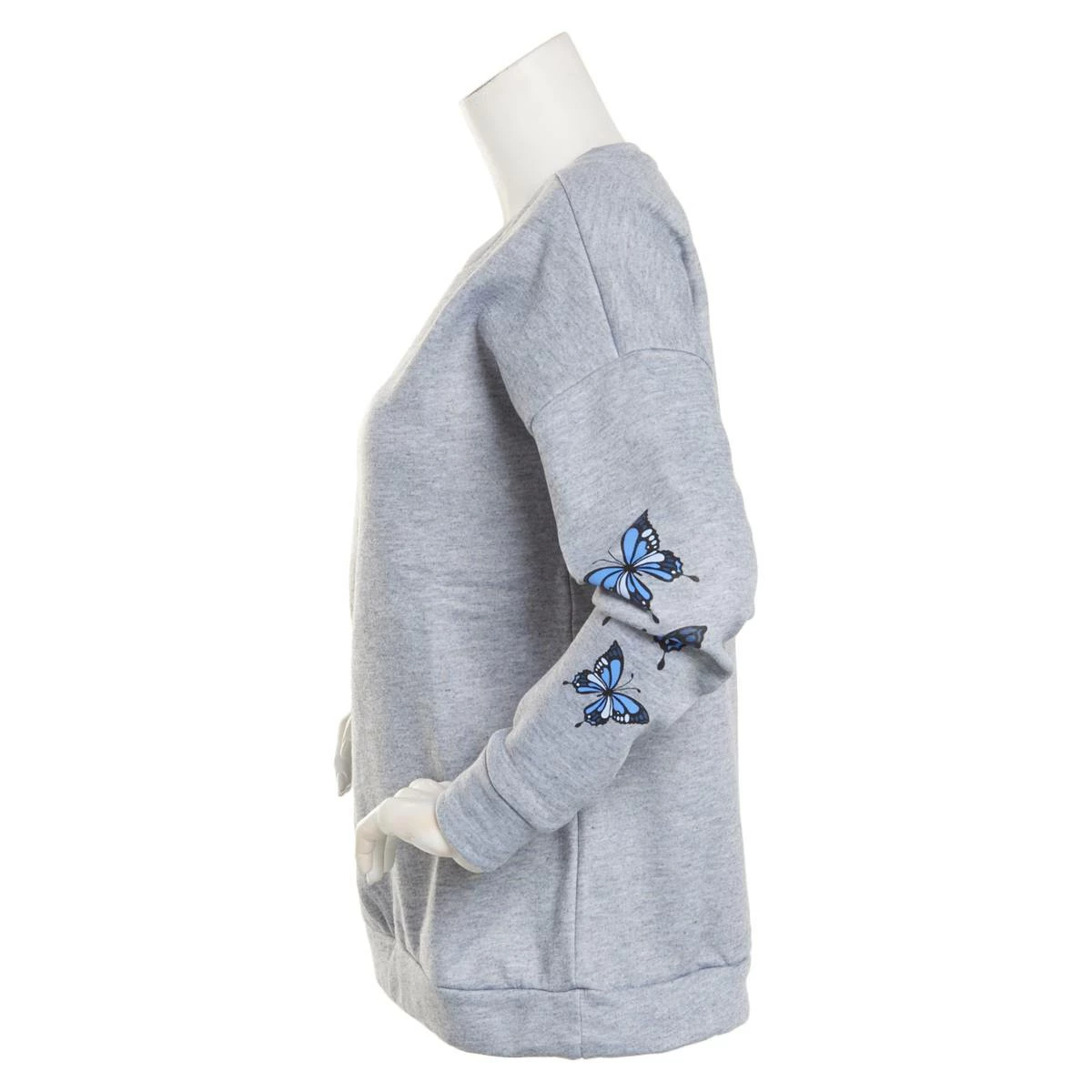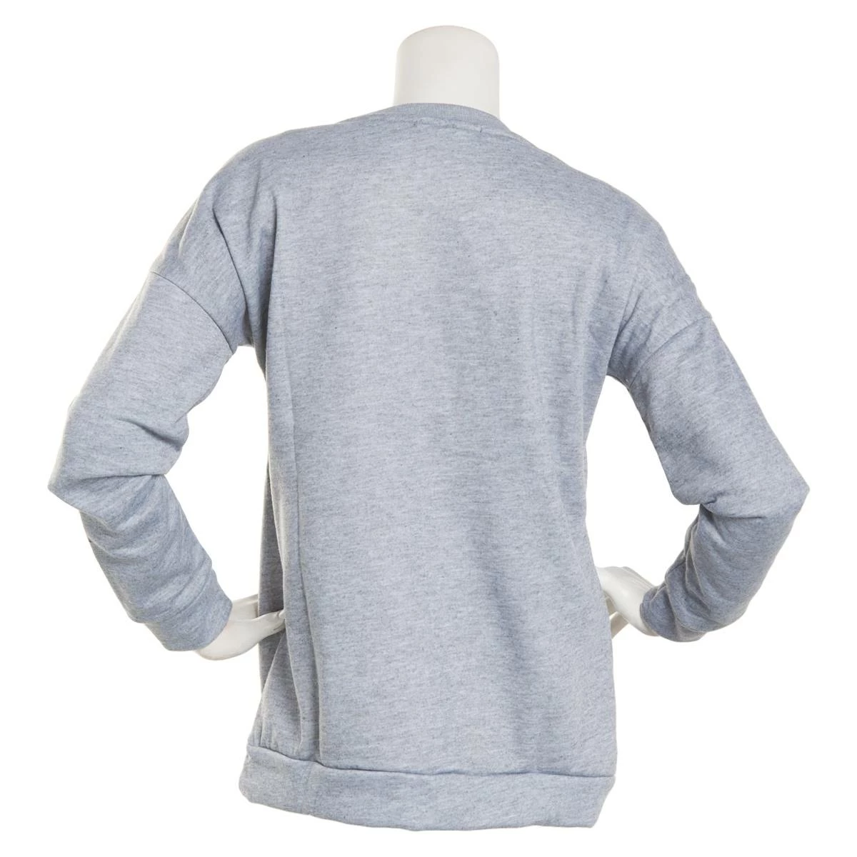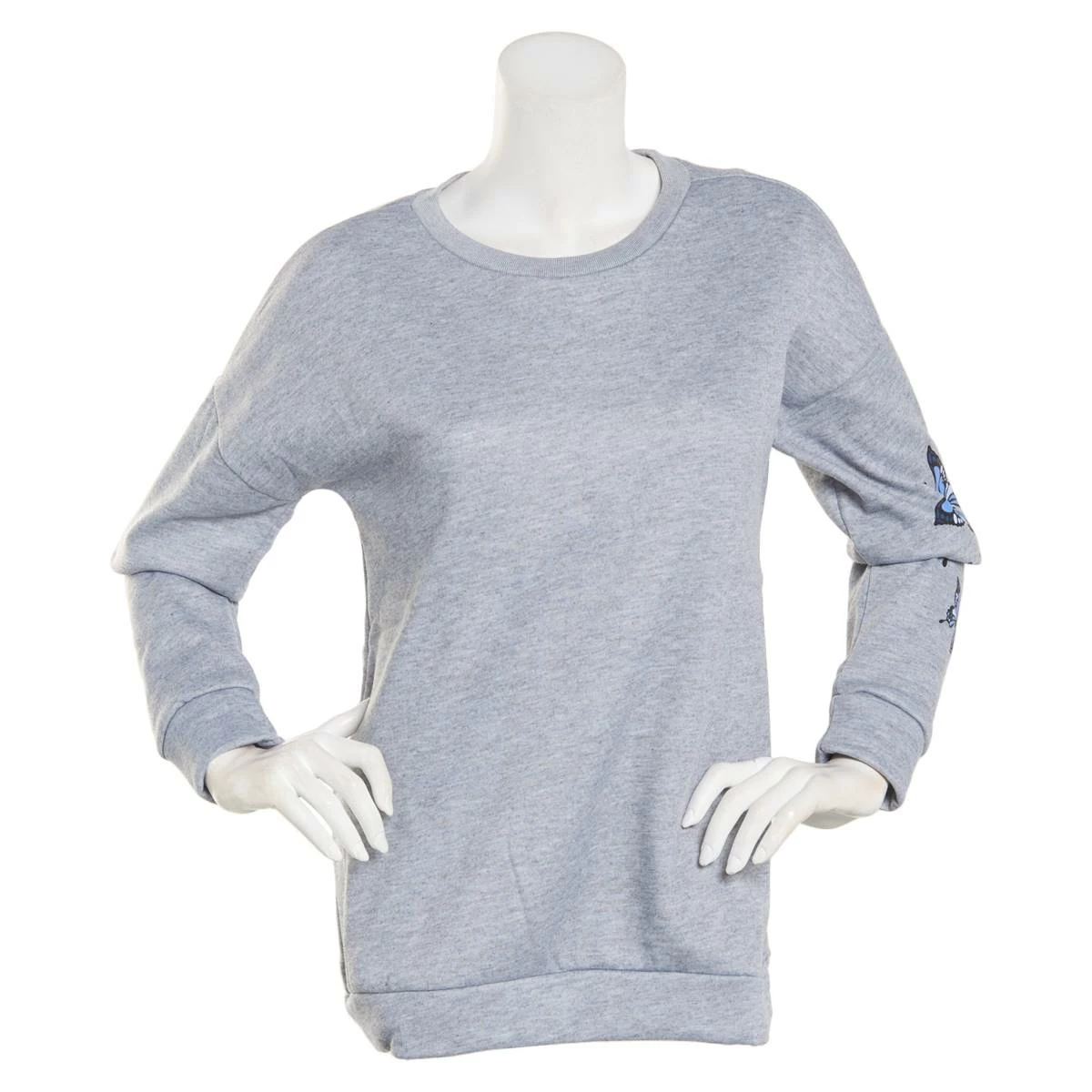 Add style to your fall collection with this Juniors Derek Heart screen sleeve boyfriend tunic sweatshirt that featuers a crew neckline and long sleeves.