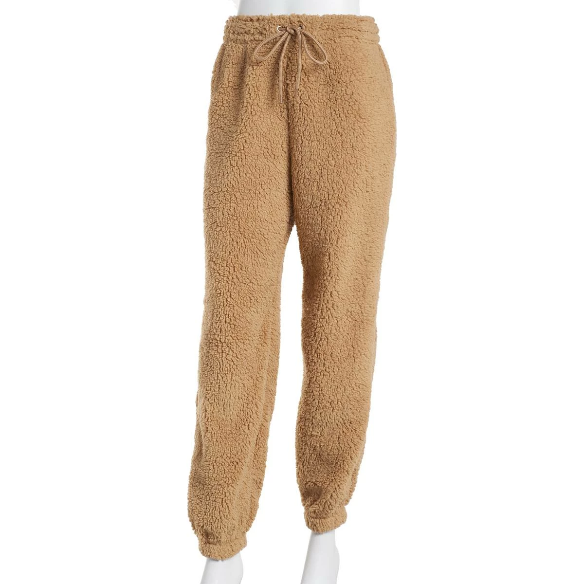 Stay warm and cozy with these fluffy faux Juniors Derek Heart Sherpa joggers pants that feature a drawstring with high rise waist.