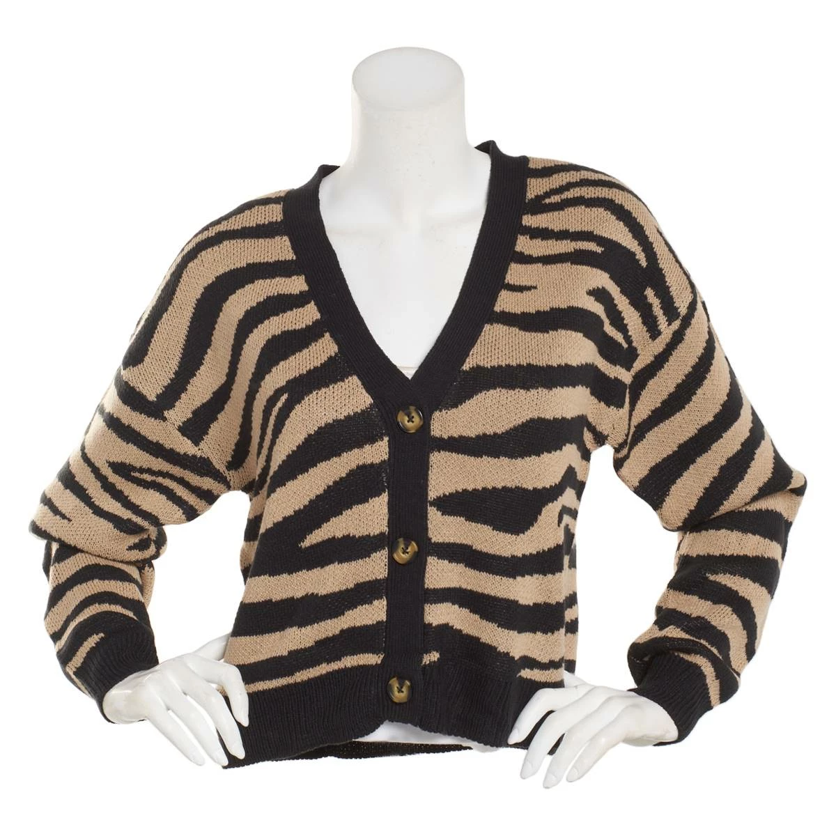 This stylish Juniors Derek Heart jacquard crop cardigan features a v-neckline, long sleeves, and a button front. Layer this with a solid top and jeans for a nice fall look.