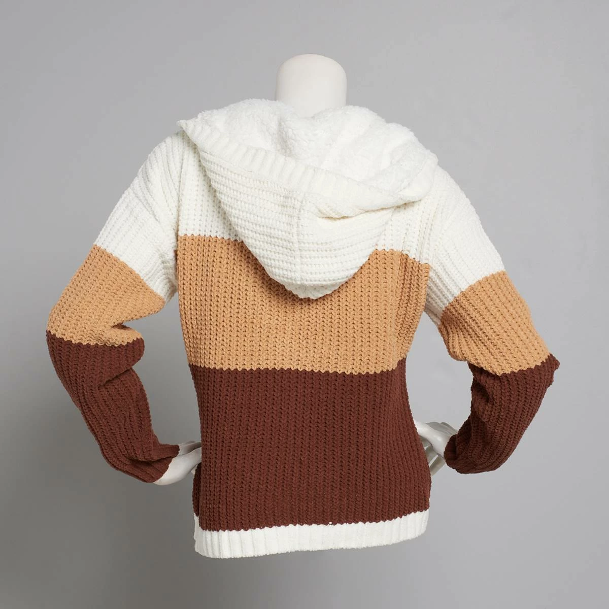 Layer this Juniors Derek Heart matte chenille color block hooded open long sleeve cardigan with any solid top.