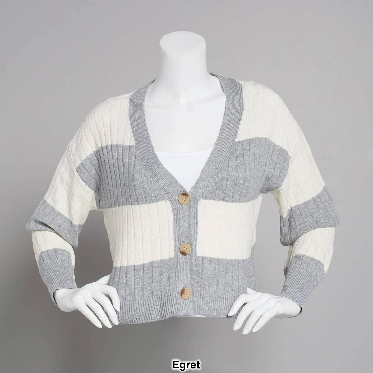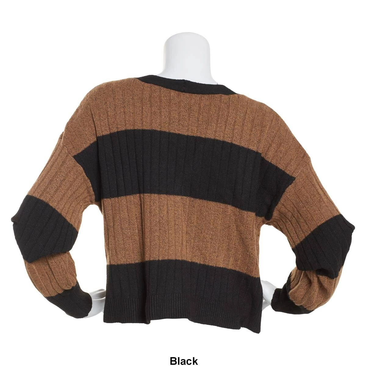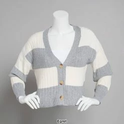 It’s cold outside, and you don’t have a jacket to spare. No problem! This Juniors Derek Heart rugby stripe button front 18-inch cardigan sweater features a v neckline button front and long sleeves.