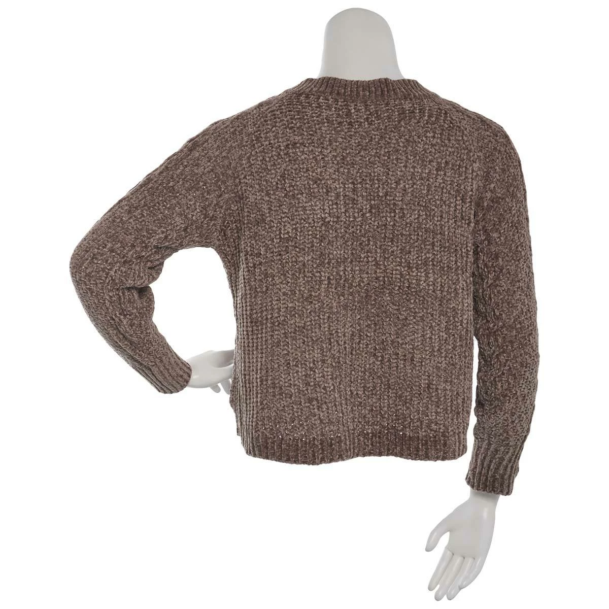 Be ready for the colder season wearing this Juniors Plus Derek Heart matte chenille mixed cable sweater featuring a v-neckline and long sleeves with a high low hem.