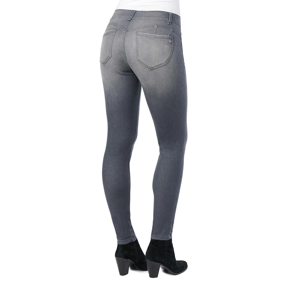 These Womens Democracy “Ab”solution® jeggings are a premium soft stretch gray denim legging that is easily styled with almost any top for a fashionable look. “Ab”solution Technology® is engineered to lift, expand, and enhance your shape to show off your positive assets and celebrate your curves. Constructed with slimming mesh panels to mold and hold your shape and provide tummy control that is also comfortable. Designed and constructed with a sweetheart shaped yoke and curved pockets to provide an instant “booty lift”.