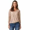 Shine bright with this jersey knit Petite Democracy foil keyhole blouse.