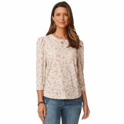 Complete your look with this Womens Democracy fringe shoulder print knit blouse.