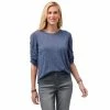Add some subtle shine to your wardrobe with this Womens Democracy jersey knit top featuring metallic threading at the v-neck, side slits at the high-low hem, ruching at the cuffs, and a chic printed design.
