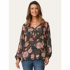 This Democracy floral woven blouse is a showstopper of a piece. With sheer lightweight chiffon, this top has an attached silky matching cami.