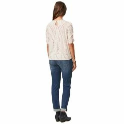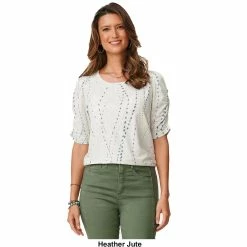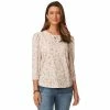 Elevate your casual look with this Womens Democracy abstract watercolor dot print blouse that pairs great with jeans!