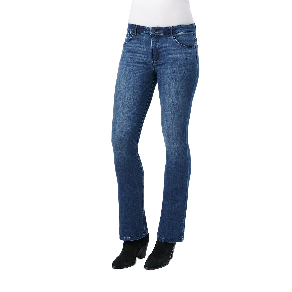 Complete your casual look with these Democracy “Ab”solution® lux medium wash blue bootcut jeans. These stretch bottoms feature a zip fly closure and four functional pockets making them perfect to pair with your favorite top.