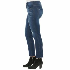 These Womens Democracy “Ab”solution® fit technology, including a hidden no-gap elastic waistband and built-in slimming power mesh panels that slim and trim. Distressed details give these jeans a well-worn look.